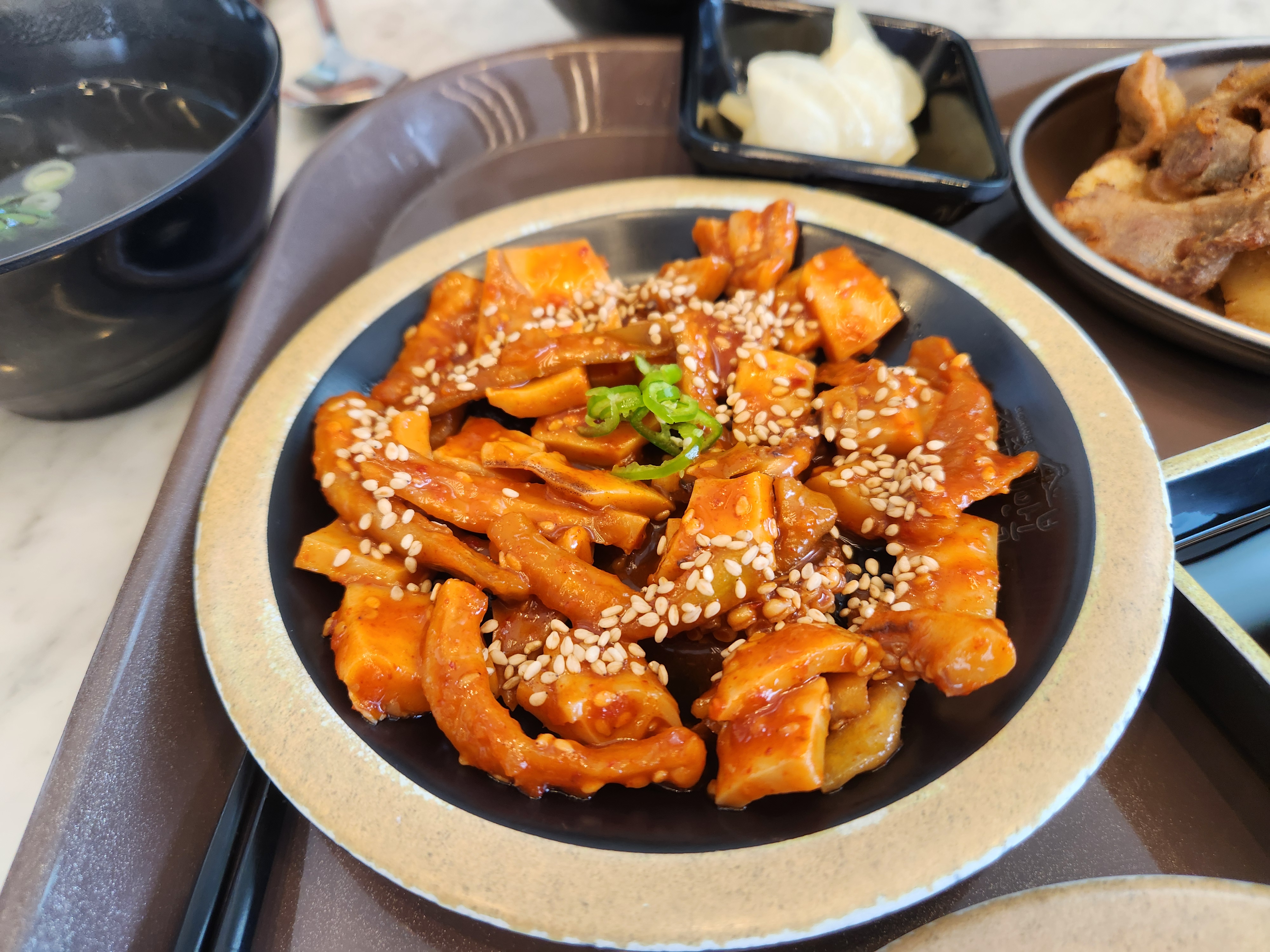 오징어무침은 매콤새콤한 맛이 특징이라, 김밥의 느끼함을 잡아주는 역할을 톡톡히 했어요. 함께 먹으니 밸런스가 아주 좋더라고요!
