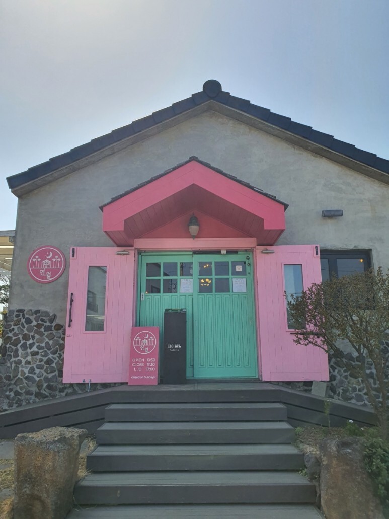 파스텔톤에 가게가 참 인상적입니다.
